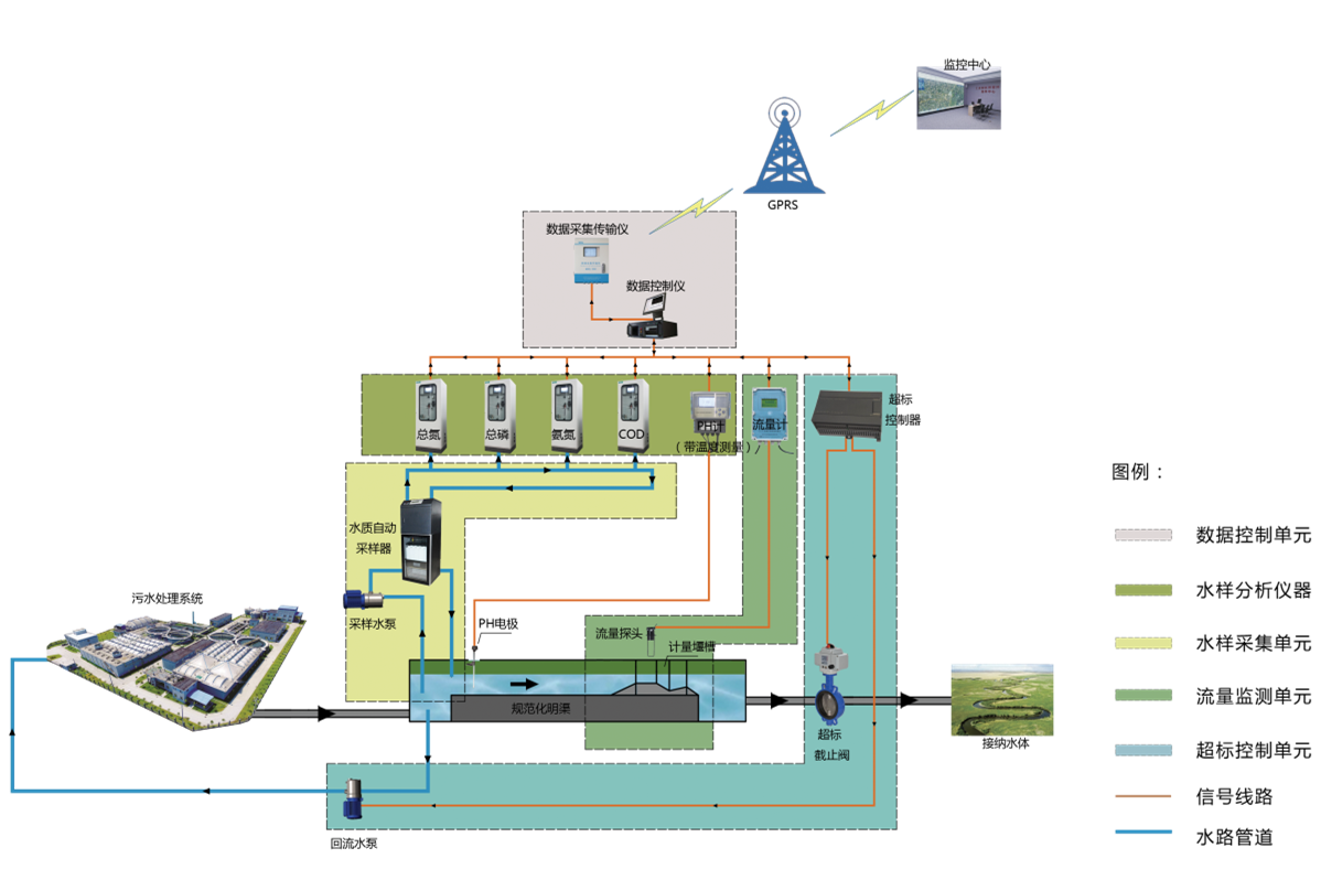 08污染源水質在線監測系統適用于各排污企業對污染源水質排污監控及控制的需求。該系統根據2020年國家技術規范(HJ353-2019)和其他標準進行設計,由實現水污染源流量監測、水污染源水樣采集、分析及分析數據統計與上傳等功能的軟硬件設施組成的系統。該系統具有監測數據實時采集、傳輸、管理、質控、反控等功能,還具有水質治理設施運行情況分析功能和排污總量控制功能。